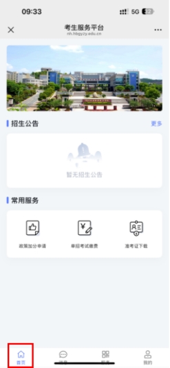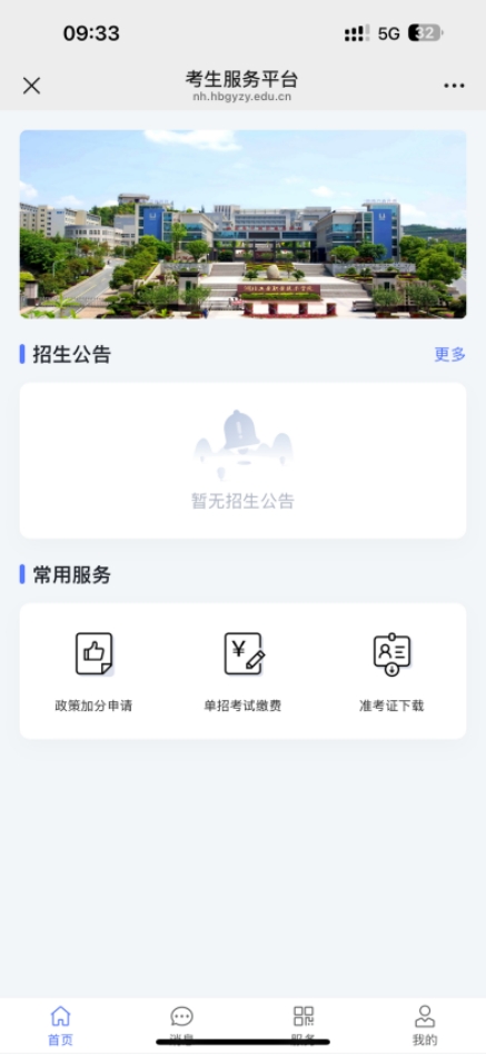 2.扫描成功后,进入单招考生服务平台,界面如下图所示: