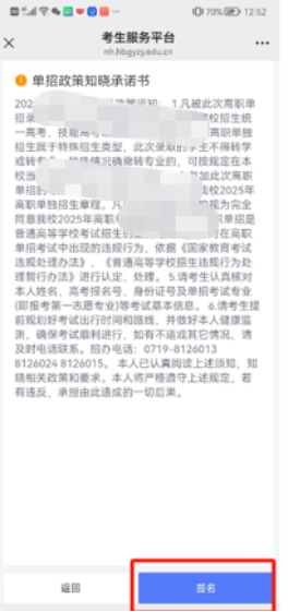 点击上图的“签署承诺书”后,阅读考生诚信报考承诺书,完成承诺书在线签名。