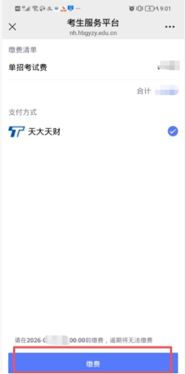 单招考试费缴纳时间:2026年4月3日00:00:00-4月5日23:59:59