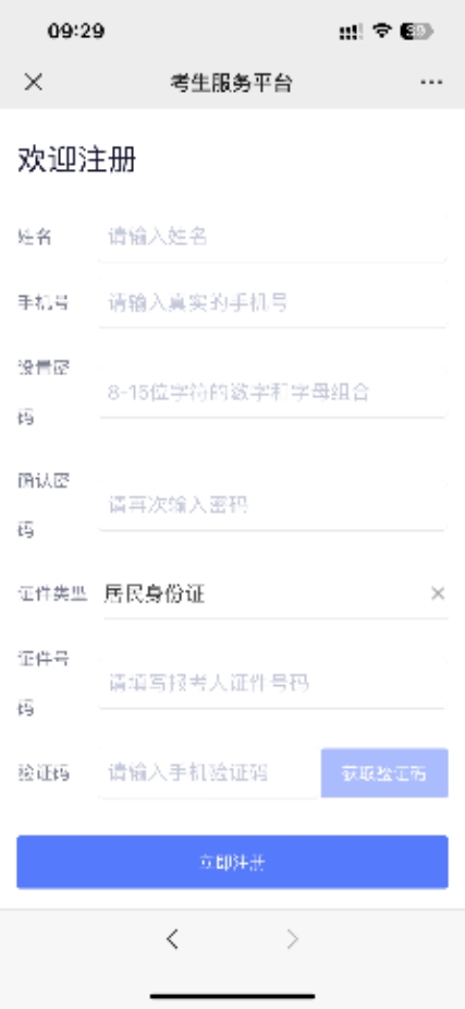 3.2 如果没有注册过账号,则先点击"立即注册"按钮后进入注册页面
