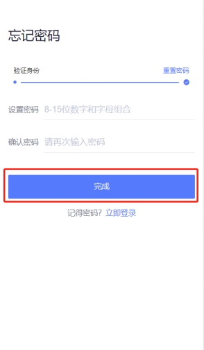 3.4忘记密码:进行用户注册完成后,如忘记了个人注册时设置的密码,可按如下步骤重置密码。