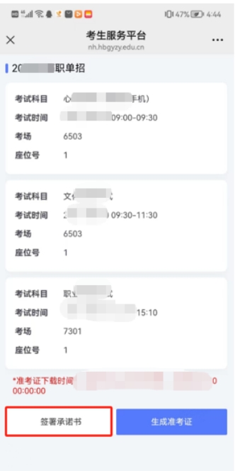6.3上一步完成承诺书签名后点击“生成准考证”按钮,系统生成考生的准考证文件,文件格式为pdf。操作系统不同的手机,操作流程也有不同。下面以常见的苹果和安卓系统为例: